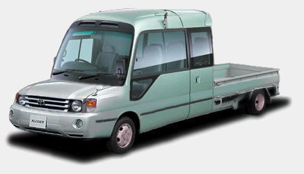 バスをベースに、フロントマスクを移植したSUVとトラックの荷台を合成。