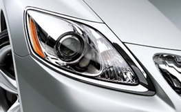 レクサスGSのフロントライトは、メッキで縁取りされていました。フロントライトをメッキで縁取る、などという技法は、あまり見られない、珍しいデザインです。