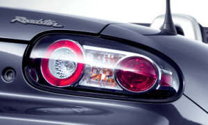 平凡に、リヤのランプをデザインするならば、赤・黄色・白だけを使いますが、このマツダ ロードスターのリヤランプ内の構成は、赤くしか光らないはずのブレーキランプの周りを、メッキで縁取っています。そればかりか、ウインカーやバックランプ(後退時に点灯)もメッキで縁取られています。こうすることで、ライト内のデザインにメリハリが生まれ、より際立ったスタイルとなるのです。