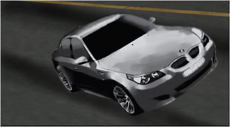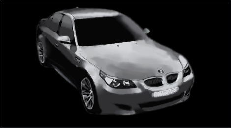 原画。BMWのサイトのフラッシュコンテンツからプリントスクリーンして、これを元に絵を描いていきます。とは言っても、この上から直接なぞる、といった手法で書き上げていきます。