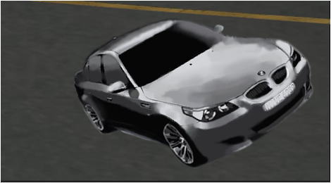 この作業は、濃さの調整や場所によって色を変えたり、それっぽくなるように書き込み。今度は、この出来上がった路面画像に、車の絵を合成します。